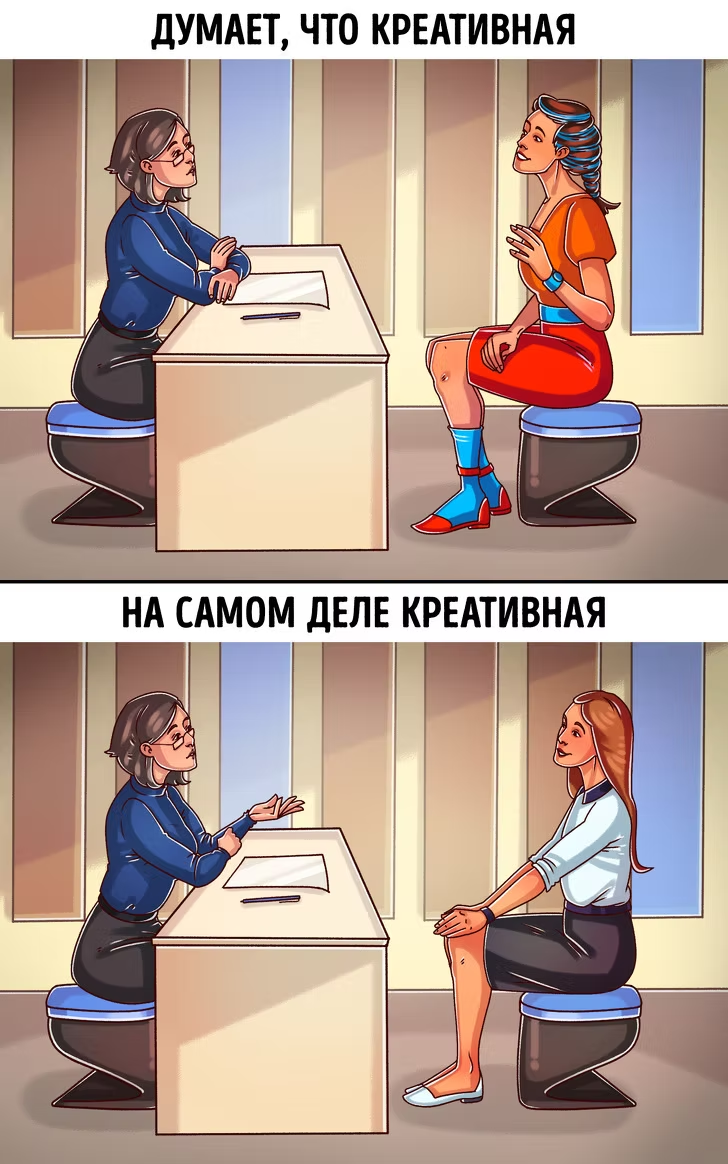 Если вы представитель творческой профессии (фотограф, музыкант, дизайнер, актер, журналист), лучше позволить себе более свободную одежду, подчеркивающую вашу индивидуальность. Но тут тоже важно не переборщить. То же самое касается собеседований в стартапы, которые в основном состоят из молодых специалистов и где не приветствуется строгий дресс-код.